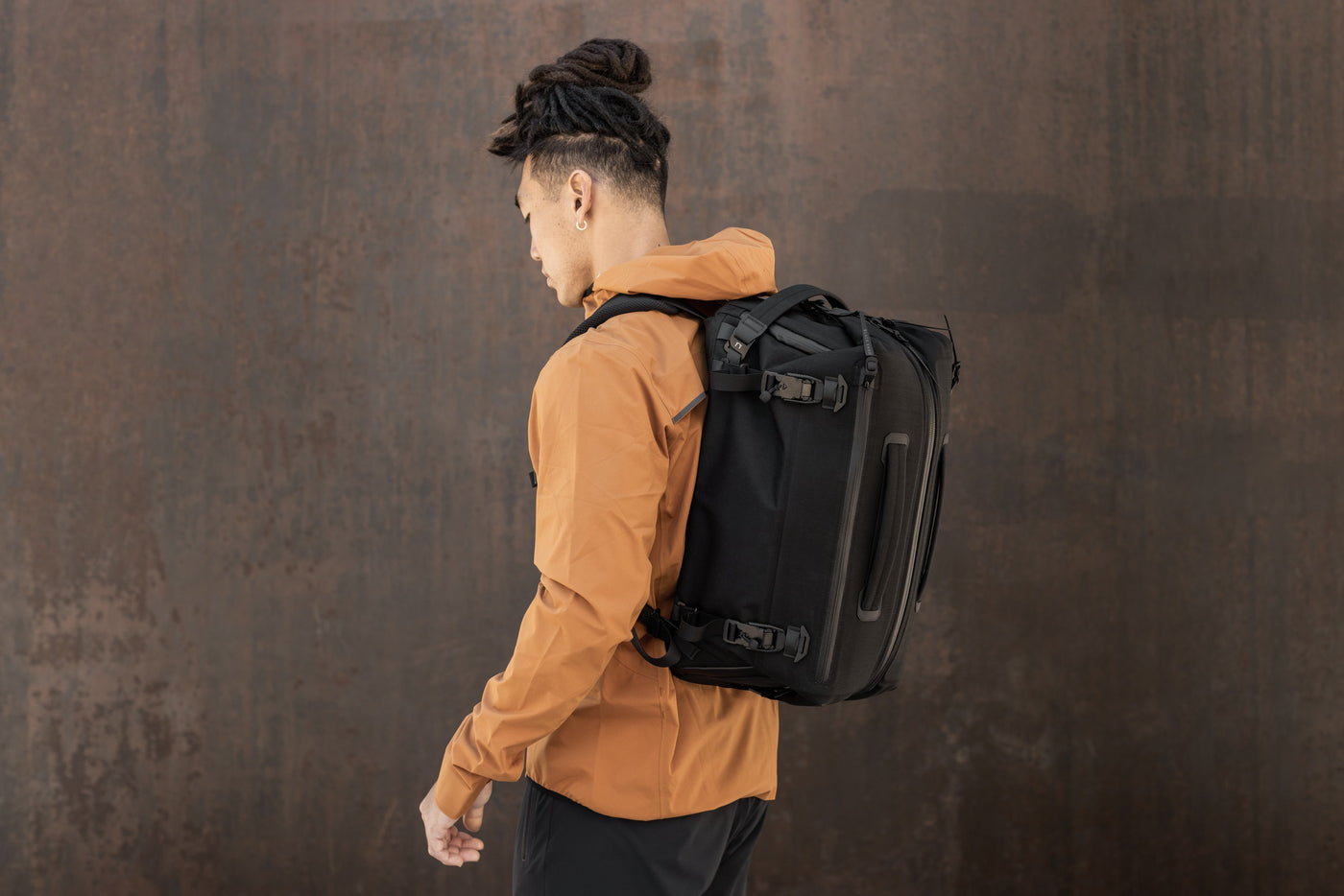 - Stowable duffel and backpack straps