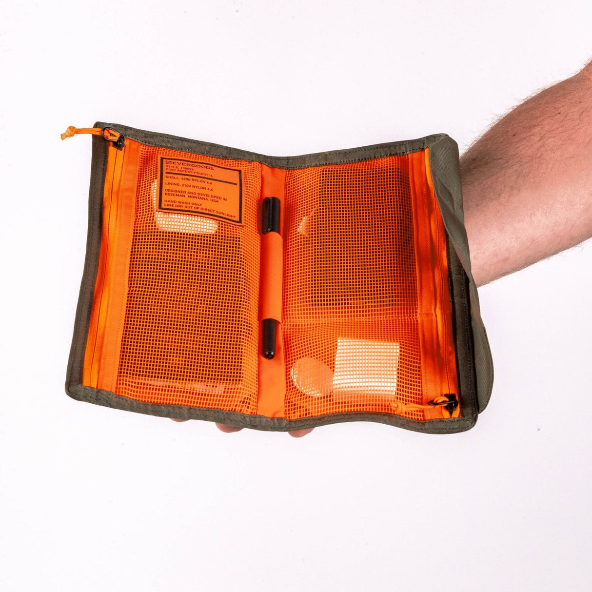 The new Undyed color skips the dyeing process and utilizes regular undyed, greige yarn, leading to a more eco-friendly and futuristic NASA-looking end product. This was a huge effort by the Evergoods team to source and deliver materials and fabric. Textile, foam, lining, mesh, webbing, zipper chain, and labels are all Undyed, Every Undyed product is one-of-a-kind due to raw material.