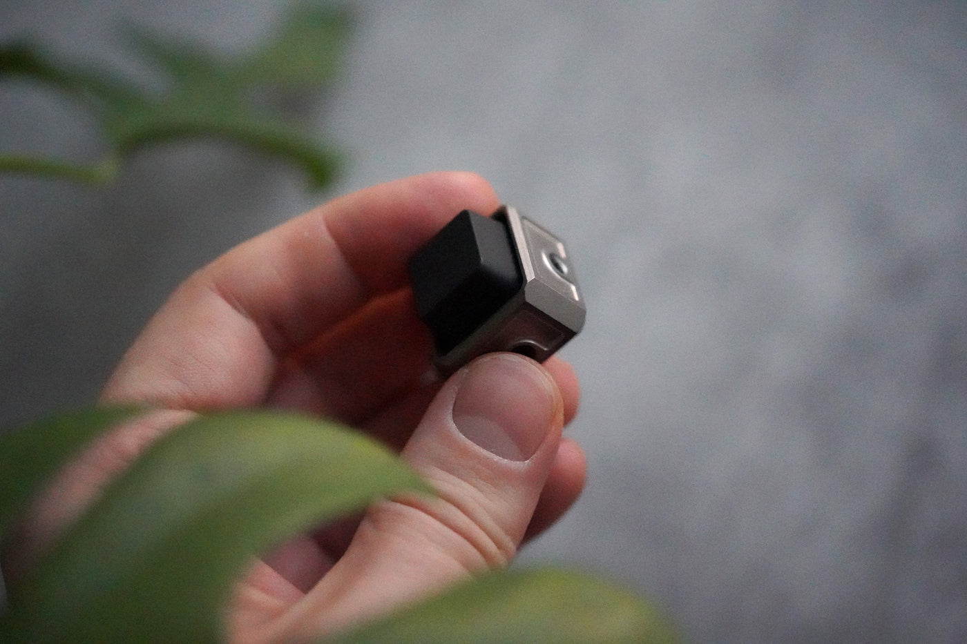 Each Switch comes with a removable keyring loop attachment and both switches (loud & tactile, quiet & smooth). The switch is attached to the body with screws, so changing the switch is a gentle process. The keycap is made from black aluminum, and you can change these out for any keycap with an MX stem.