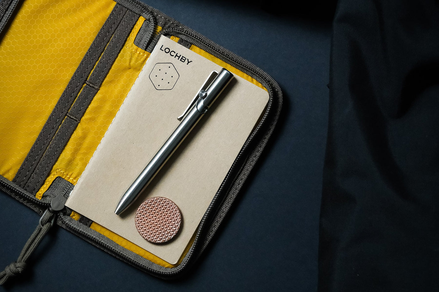 The Pocket Journal is an ultra portable notebook organiser that fits in the pocket. It is made from rugged waxed canvas and fully zipped to keep your valuables protected. The exterior pockets hold pens, tools, pocket knives and more, while the interior pockets fit business cards, passport or second notebook. Comes with the Lochby Dot Grid notebook included, fits any standard pocket size memobook (89 x 140 mm).