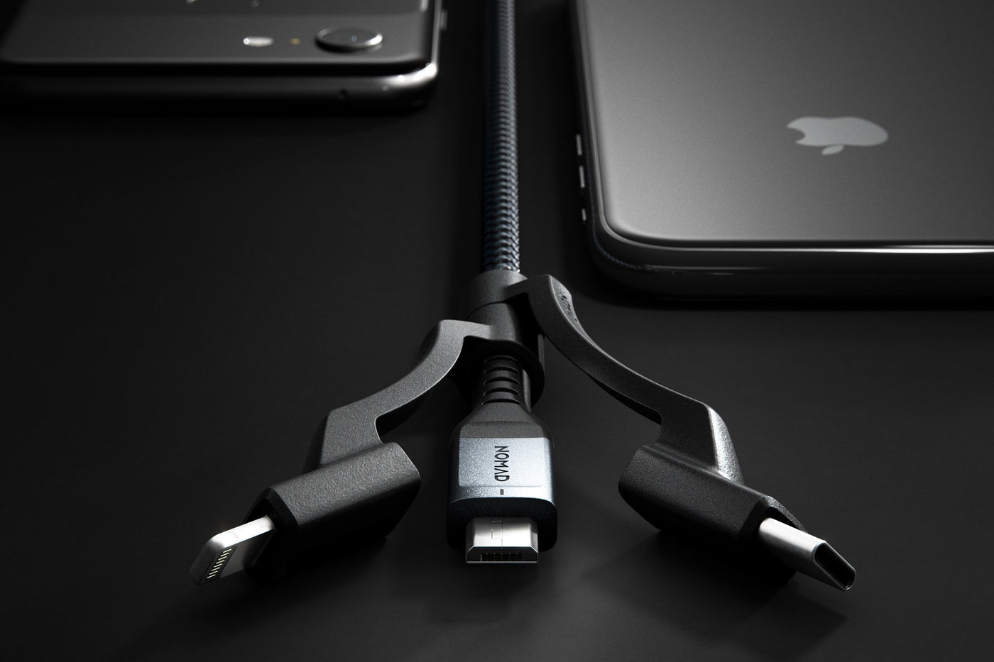 Designed to charge almost any device, Universal Cable with Kevlar® quickly transitions between Micro USB, USB-C, and Lightning connectors. Reinforced with a double-braided Kevlar® outer sheath and Kevlar® central core, this cable has been engineered for extreme durability and heavy everyday use. The robust exterior metal housing ensures the longevity of each connector and the strain relief support is thoughtfully engineered.