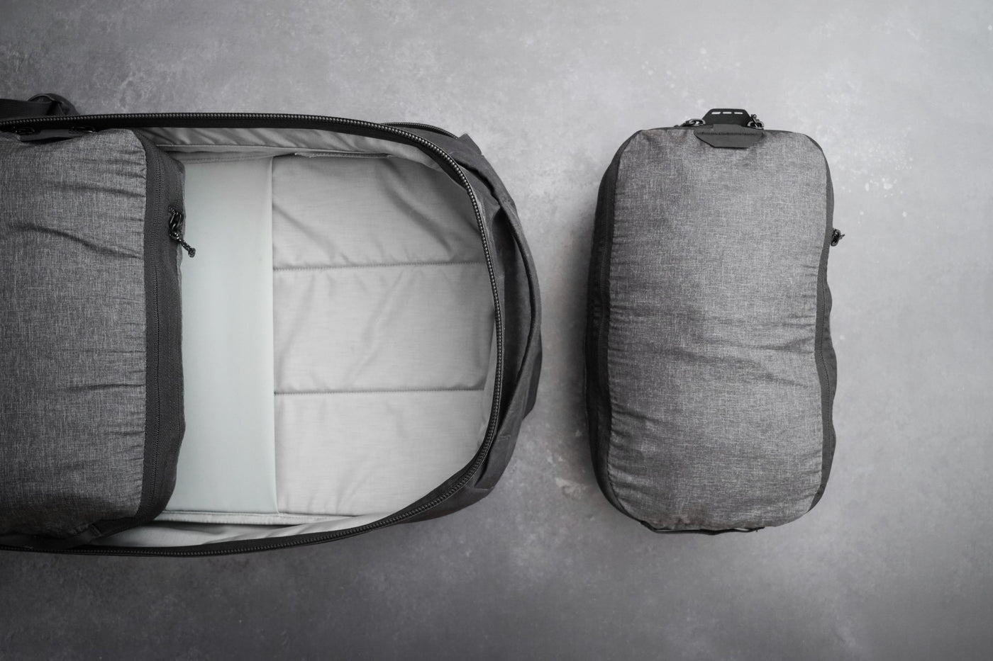 Peak Design Packing Cubes are compressible, easy to access and instantly dividable. A unique tear-away zipper lets you access contents quickly, unlike the traditional U-zip openings. An internal, adjustable divider makes it easy to separate clear and dirty clothes. A compression zip lets you to compress the contents once packed. Outer shell is self-healing 70D nylon.