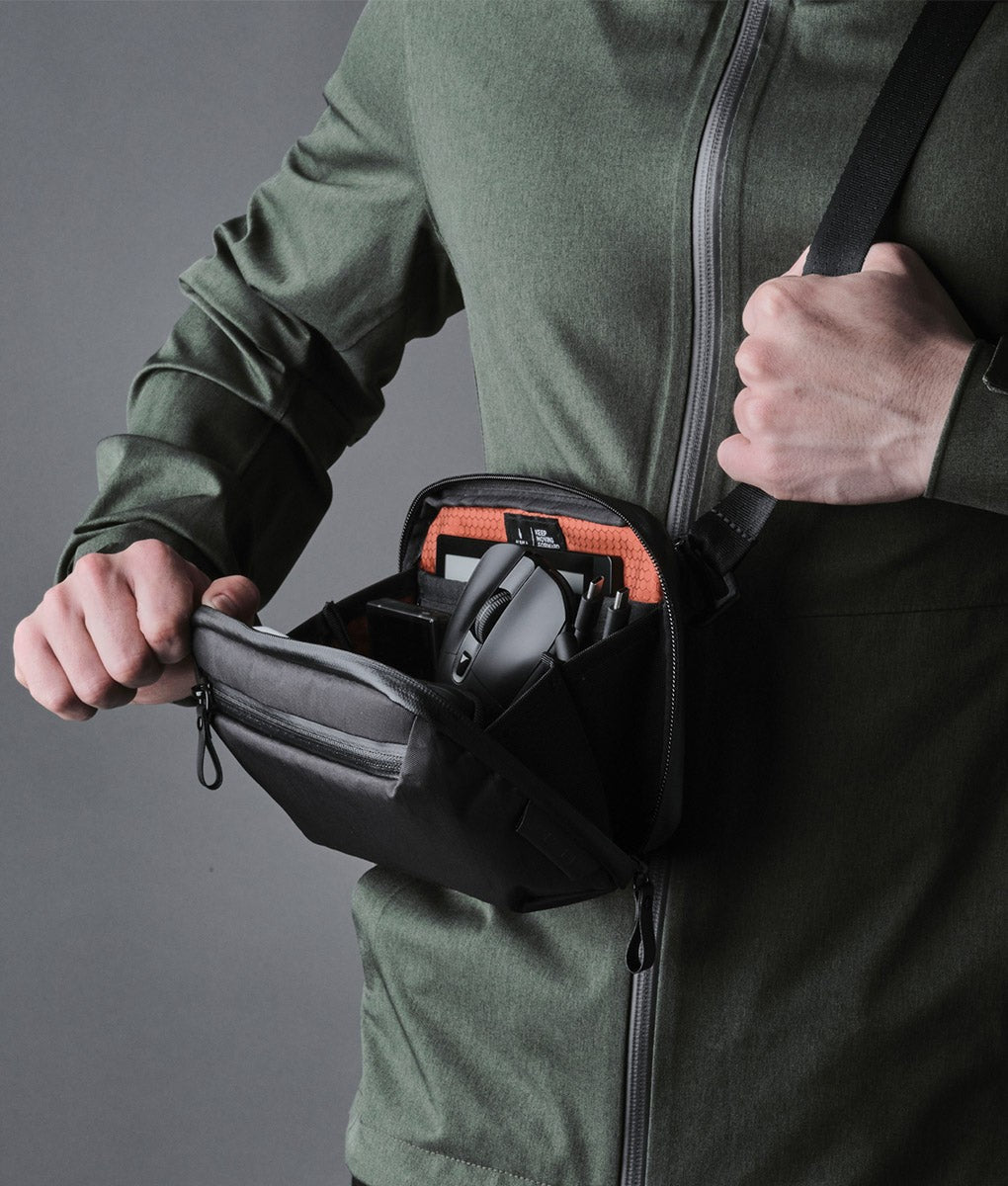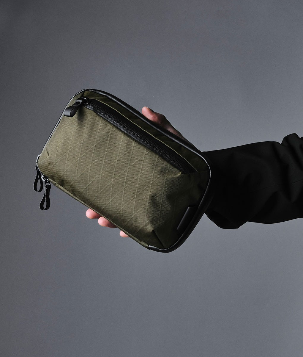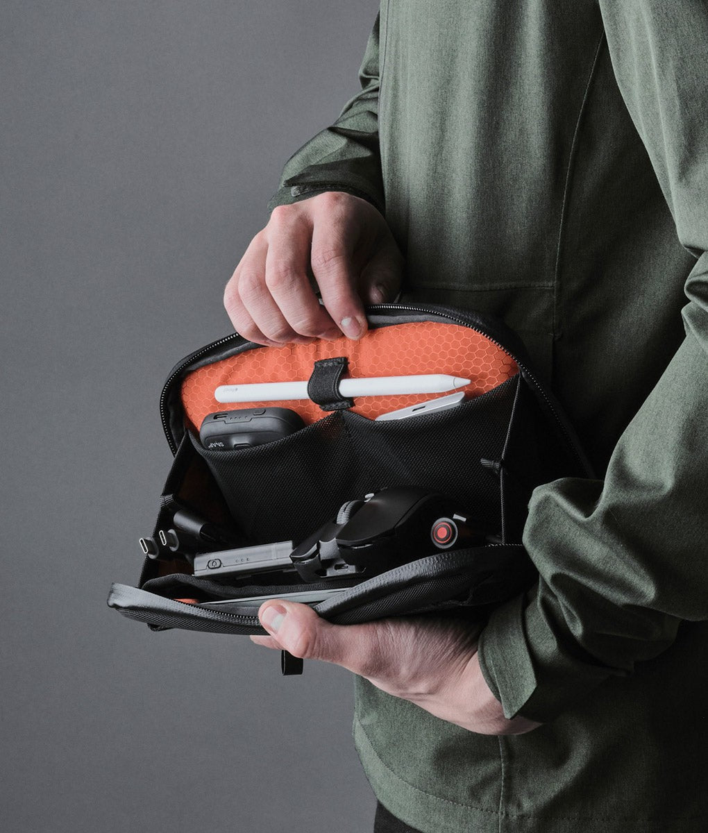 A slim tech case with tons of organization. It has multiple pockets to keep your gadgets neatly stored as well as a zippered front pocket perfect for stowing away loose items like keys or cables.