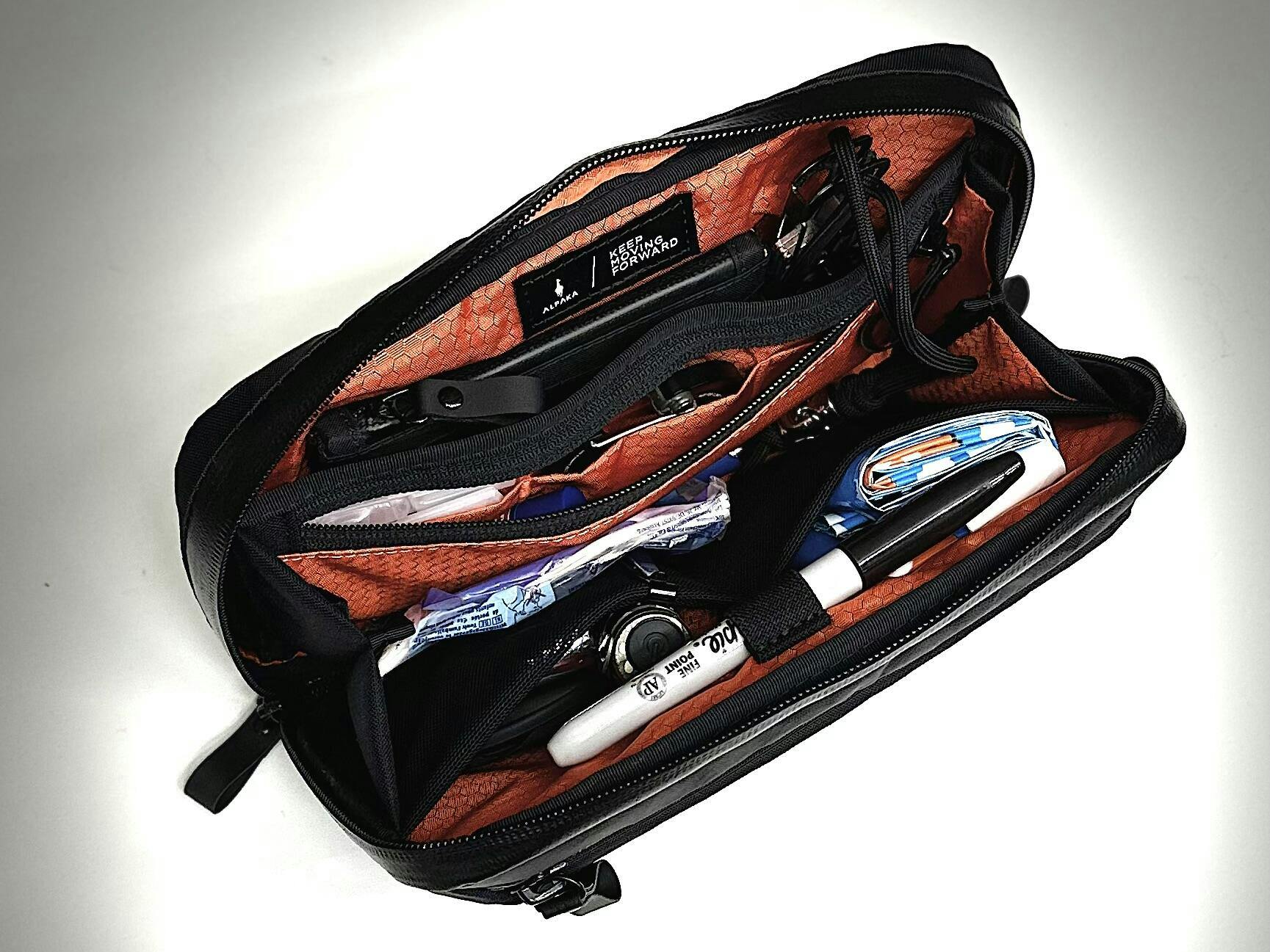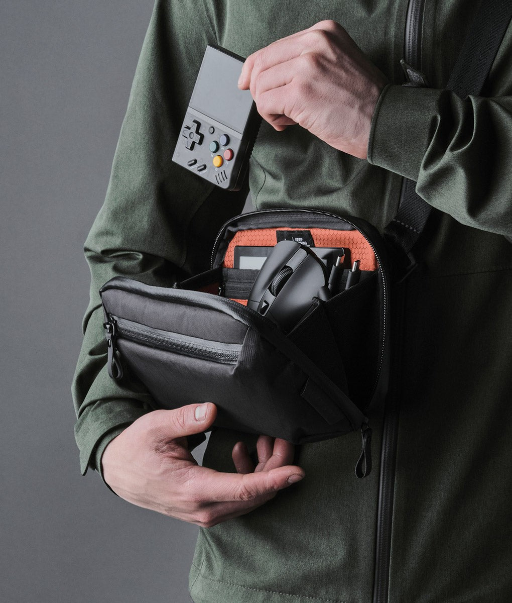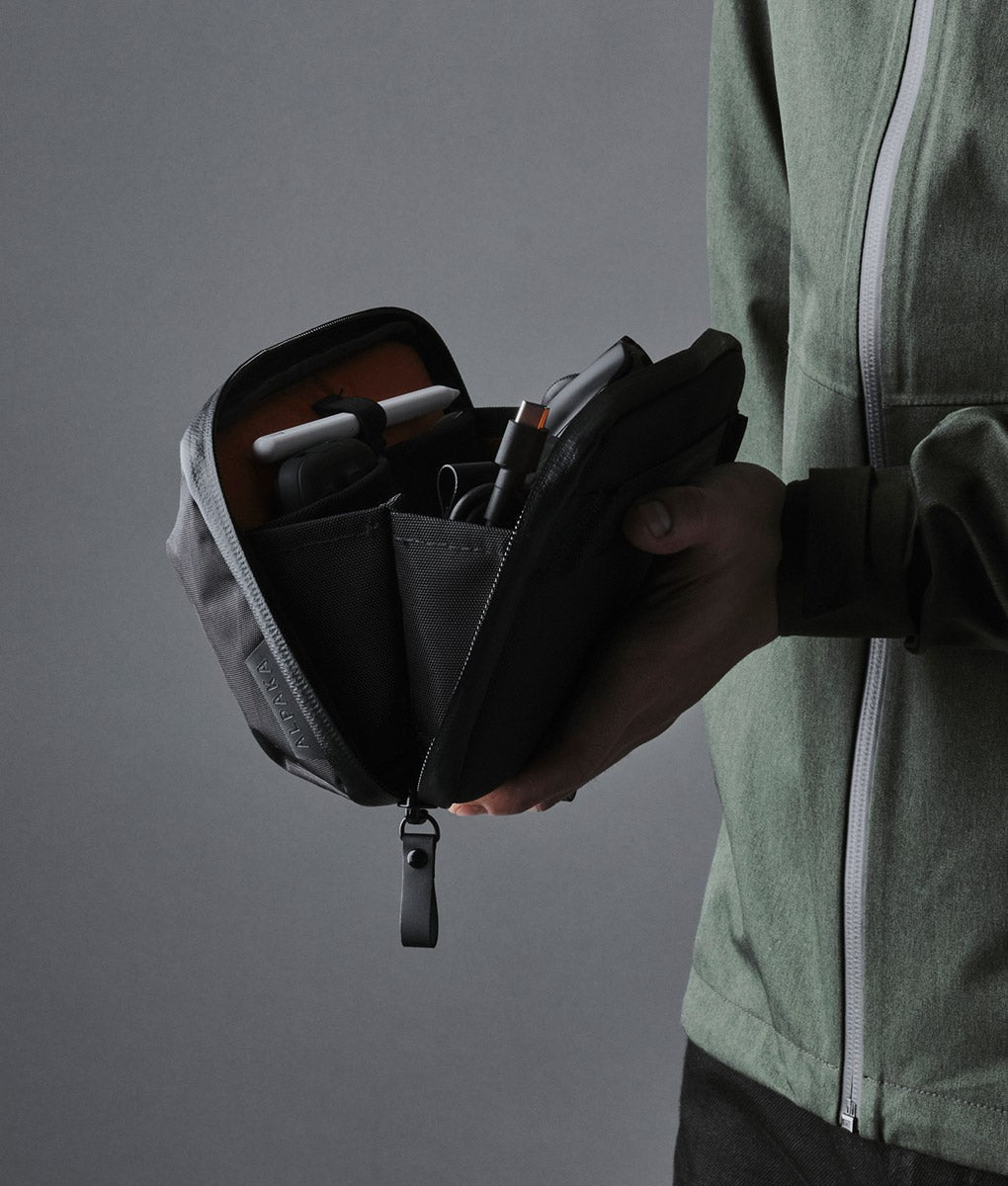A slim tech case with tons of organization. It has multiple pockets to keep your gadgets neatly stored as well as a zippered front pocket perfect for stowing away loose items like keys or cables.