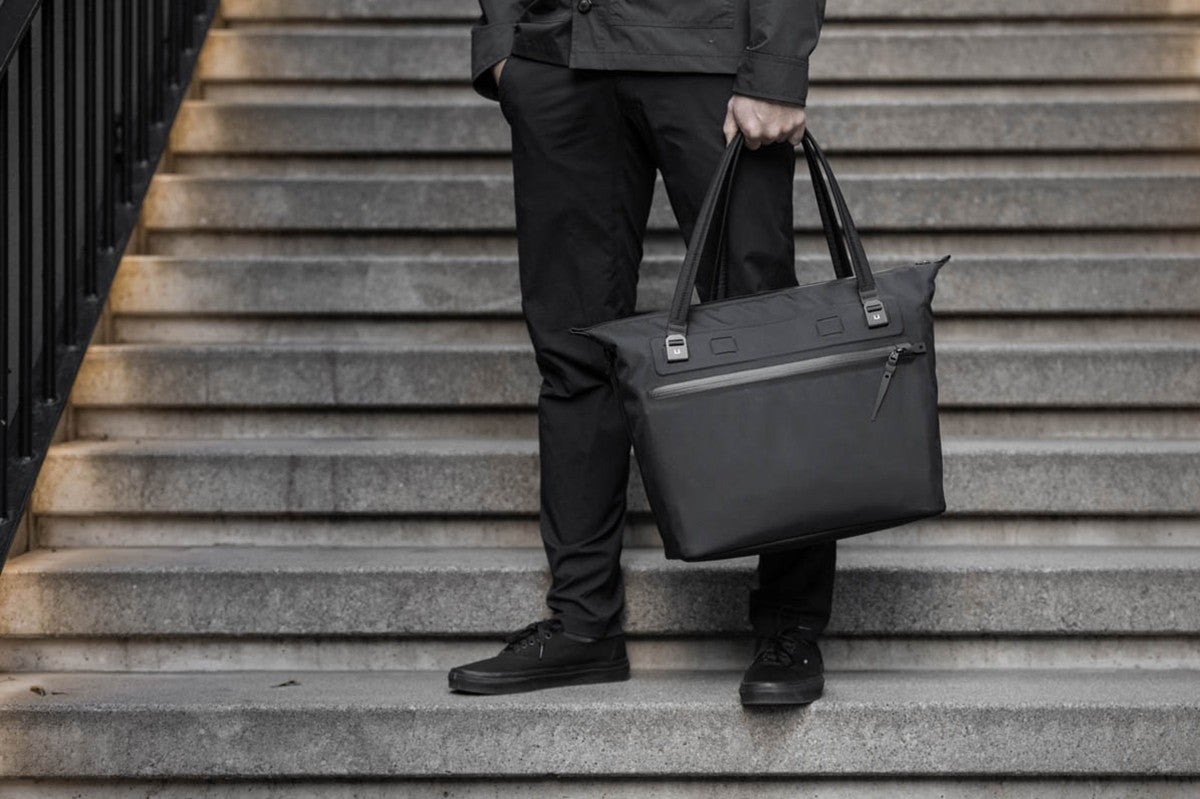 The WPT is a smart city tote designed to keep your gear organized and protected. Your essentials are right at hand in the quick-access pocket. Laser-cut, locking zipper pulls help secure your gear, and zipper pockets on each side are great for water bottles and umbrellas. Inside you'll find padded and suspended magnetic laptop and tablet sleeves for 12” tablets and 14” laptops.