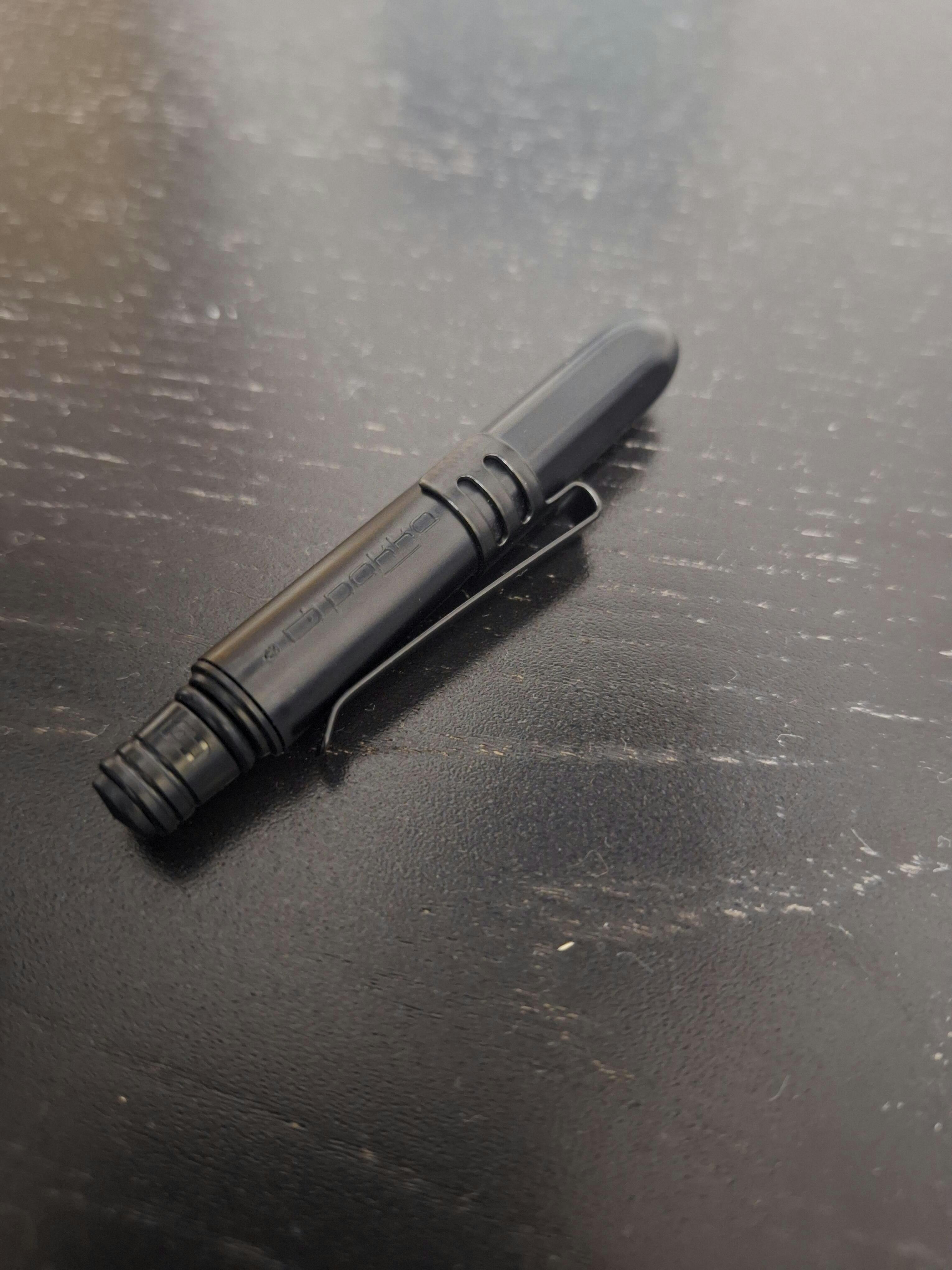 The Classic Pokka Pen is a compact and lightweight pen which snaps shut to seal out dirt and water. The cap snaps securely onto end of pen creating a comfortable standard-size barrel. The compact size allows the pen to be stashed and carried anywhere you might need a pen, such as in the pocket, EDC kit, boat or glove box. Made in USA, replaceable refills.